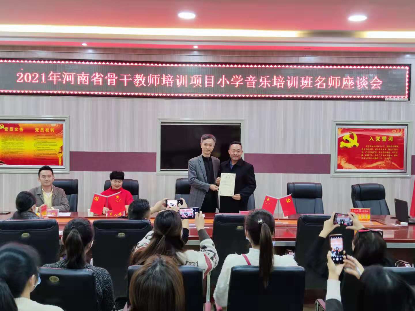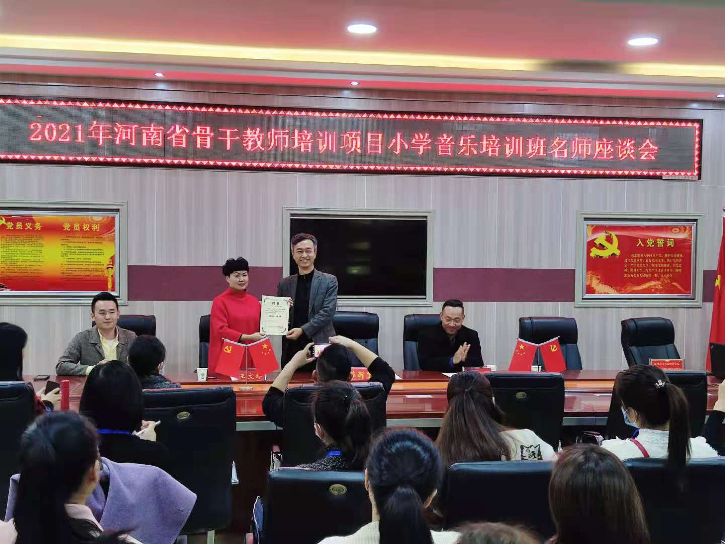 10月23日下午,“2021年河南省骨干教师培训项目小学音乐培训班”名师座谈会在艺术楼会议室举行。河南省名师李大强、王文婷,304am永利集团院长陈新宇,省培专业班主任梁凯枫博士参加了座谈会。座谈会由梁凯枫博士主持。