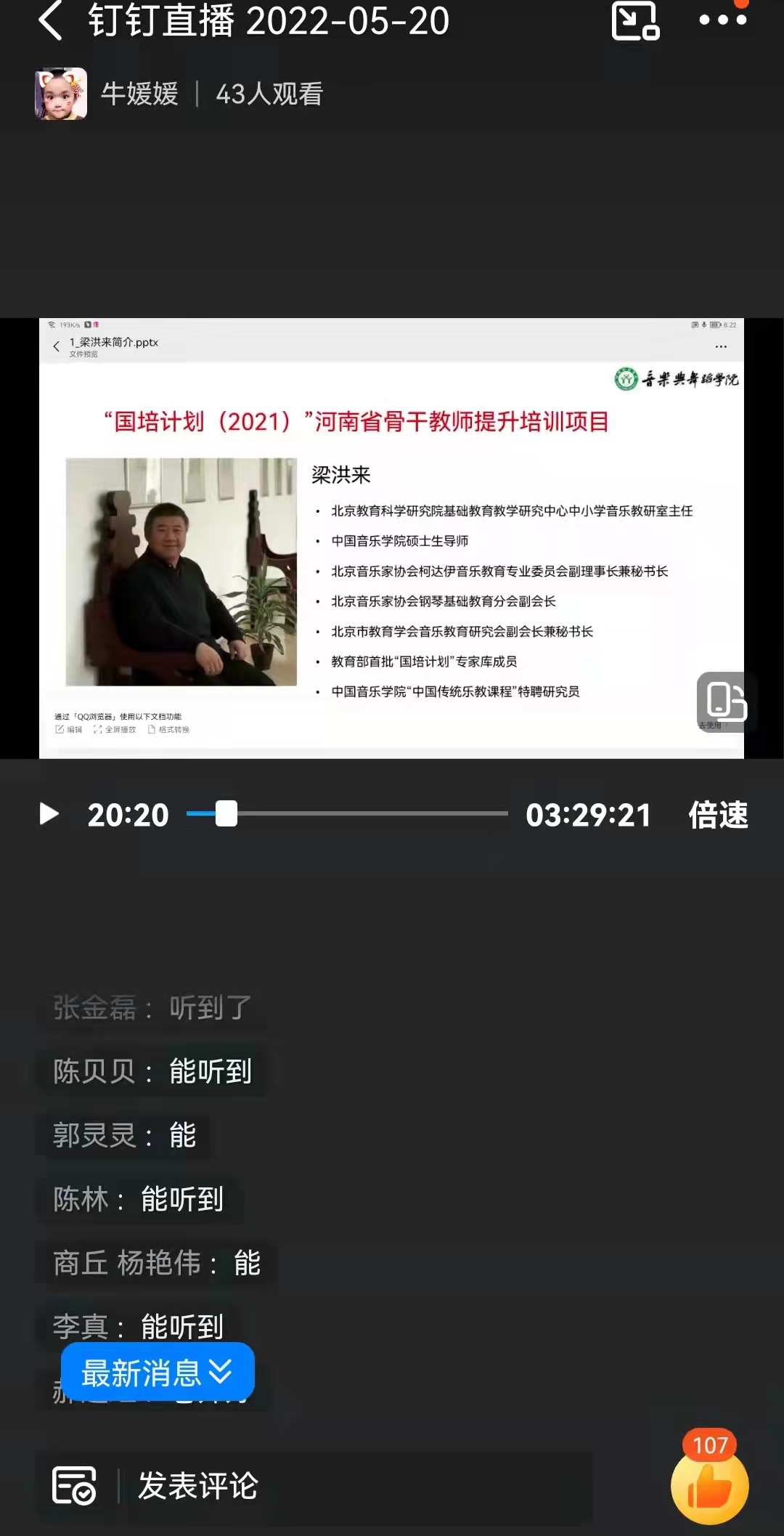 5月20日,应304am永利集团之邀,北京教育科学研究院梁洪来教授为国培计划——县级骨干教师提升培训小学音乐教师培训班学员讲授《指向学生音乐能力提升的教学设计》。由于疫情防控,本次采用线上授课。