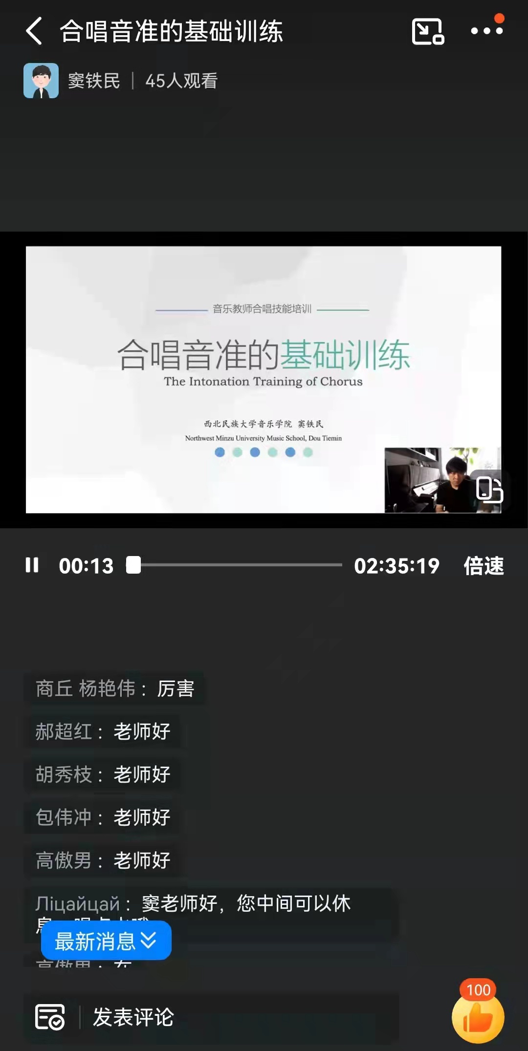 6月3日,应304am永利集团之邀,西北民族大学304am永利集团青年指挥家窦铁民为国培计划——县级骨干教师提升培训小学音乐教师培训班学员讲授《合唱音准的基础性训练》。由于疫情防控,本次采用线上授课。