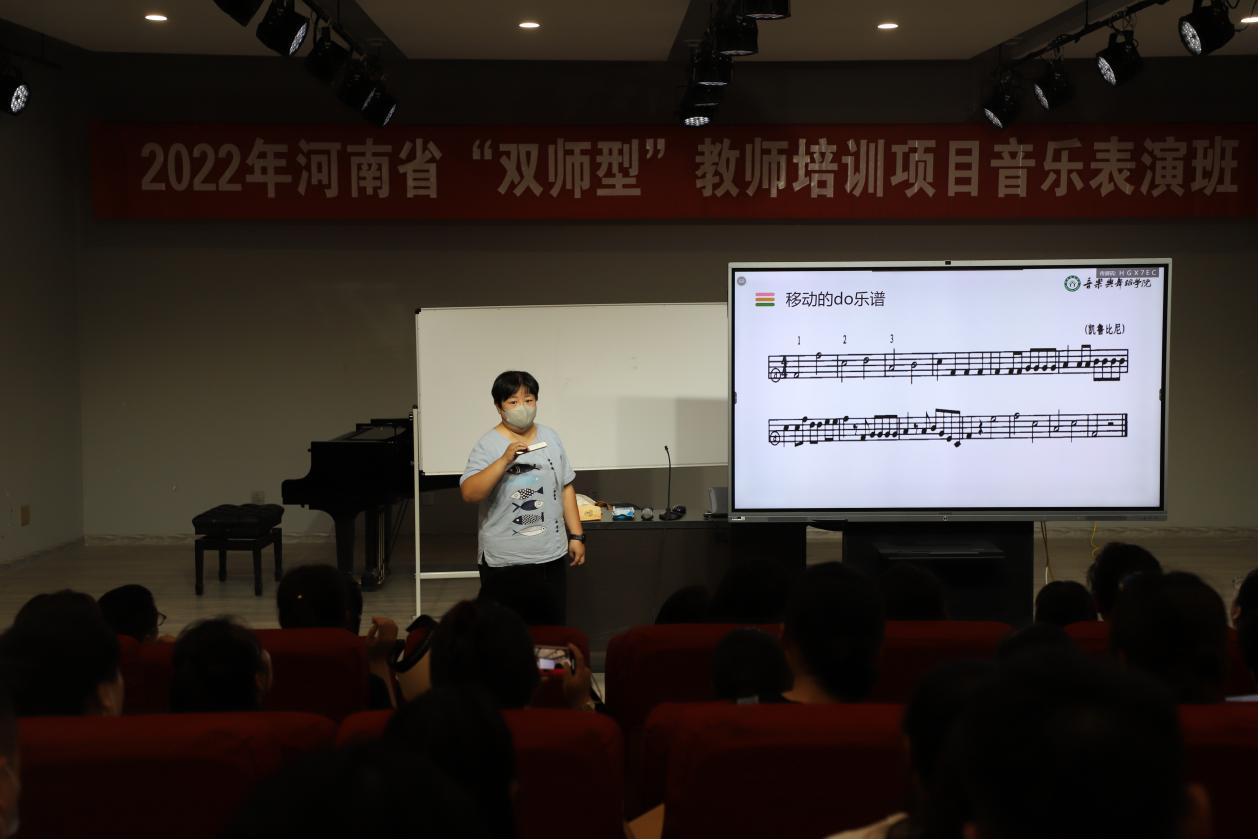 7月12日,为提高学员的视唱练耳能力,牛媛媛老师在艺术楼八音讲堂为“双师”培训班学员讲授《视唱练耳》课程。