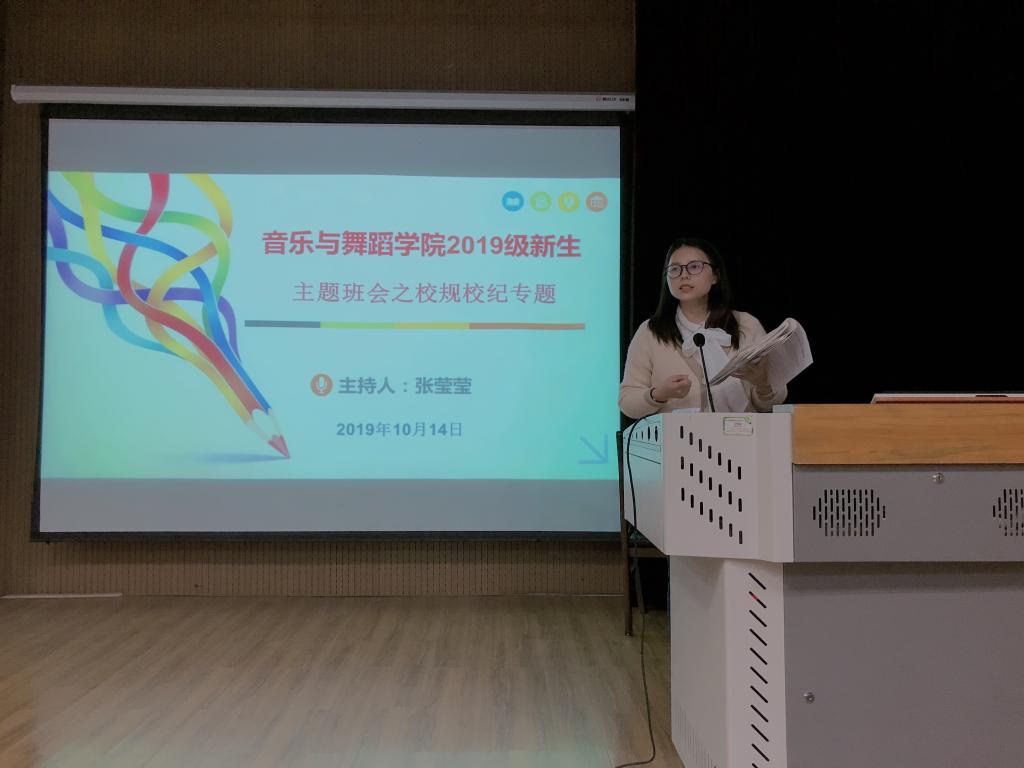 为贯彻落实普通高等学校学生管理规定,加强永利集团官网2019级新生校规校纪教育,树立其规章纪律意识,10月14日,永利集团官网新生辅导员张莹莹在艺术楼107带领全体新生一起开展校规校纪主题教育班会,全体新生积极参与。