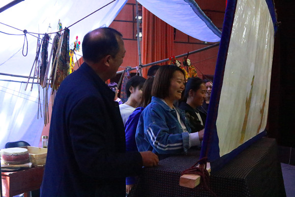 随后,光山第一皮影花鼓戏剧团在音乐厅进行了交流演出。民间艺术家们通过现场演唱、观摩研讨、师生互动等多种方式,全面展示了皮影花鼓戏曲调唱腔与皮影操作的艺术特点,艺术家们精湛的表演给在场师生留下深刻印象,研讨、教学、演出三位一体的活动形式也进一步加深了师生对皮影花鼓戏的体验认知,师生们纷纷表示大开眼界,受益匪浅。
