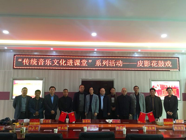 11月3日,304am永利集团与信阳市文广新局联合举办的“传统音乐文化进课堂”活动在艺术楼会议室正式启动。信阳市文广新局非遗科科长王清平,光山皮影花鼓戏团团长李家成,科研处副处长、社科办主任金荣权,永利集团官网副院长任远与80余位师生一起参加了会议。会议由郭德华教授主持。