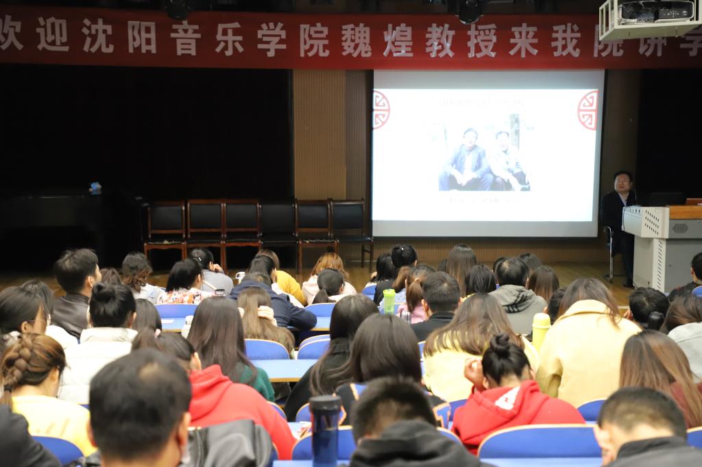 11月6日,应永利集团官网邀请,沈阳304am永利集团原副院长魏煌教授在艺术楼八音讲堂作了题为《我和我的祖国——著名作曲家秦咏诚的音乐创作与音乐教育思想》的学术报告。永利集团官网音乐理论教研室全体教师和部分学生共同聆听了报告。报告会由副院长陈新宇主持。