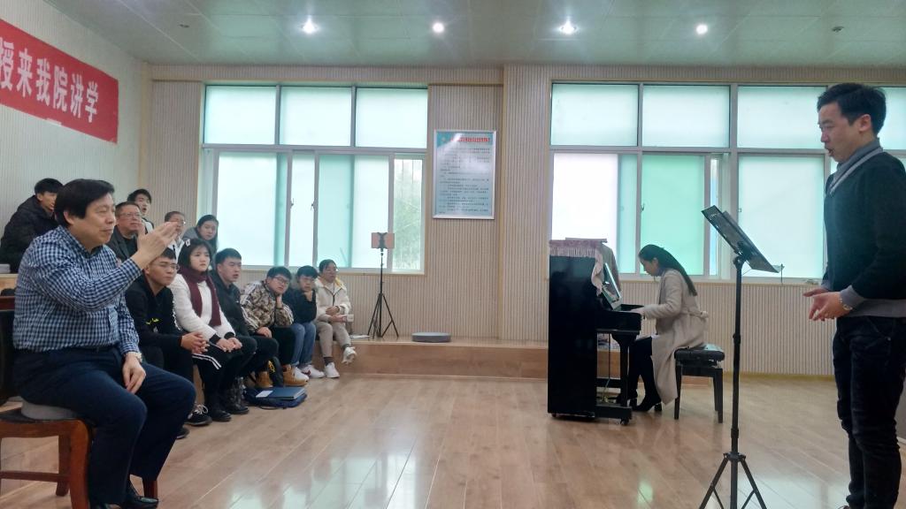 培训班紧紧围绕演唱能力和教学能力的提高,采用一对一的授课方式,对各位老师歌曲演唱的技术要领、作品处理、各声部声区过渡训练、音域的拓展、教学理念与方法等进行了全面细致的指导,有针对性地解决了老师们在演唱中遇到的不同问题。四天的授课,赵老师结合教学案例,从发声技巧、歌者修养、嗓音保健等多个方面阐述了独特的歌唱理念,引导培养良好的歌唱心态。四天的教学,赵老师以其渊博的学识和敬业奉献的精神,为老师们讲授了一堂生动的师德修养课。