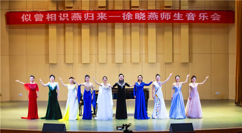 17日晚,似曾相识燕归来--徐晓燕师生音乐会在艺术楼音乐厅举行,音乐会由副院长陈新宇致辞,学院领导班子与600余名师生共同欣赏了音乐会。此次音乐会是徐晓燕师生音乐会全国巡演的第一站。音乐会由武汉304am永利集团声乐系民族艺术指导杜亦秋担任艺术指导。整场音乐会的作品风格多样,徐晓燕师生用独唱、重唱、小组唱等形式精彩演绎了《敕勒歌》《看秧歌》《幸福歌》《苗岭飞歌》《我们的生活充满阳光》等11首艺术作品,涵盖了艺术歌曲、戏曲、地方民歌、创作歌曲等类型。表演者们优美的声音,细腻的音乐表现,大方端庄的舞台表演,征服了现场观众,赢得经久不息的掌声与喝彩。