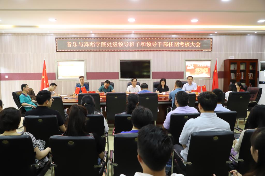 6月8日下午,学院处级领导班子和处级干部任期考核会议在艺术楼“党员之家”会议室召开。学校第四考核组组长、校纪委常务副书记刘守义,考核组成员、人事处副处长汪霞,党委组织部组织科科长冀鹏一行到场指导考核工作。学院50名教职工参加会议,会议由党委书记武治国主持。