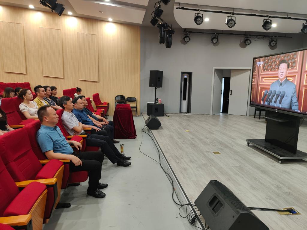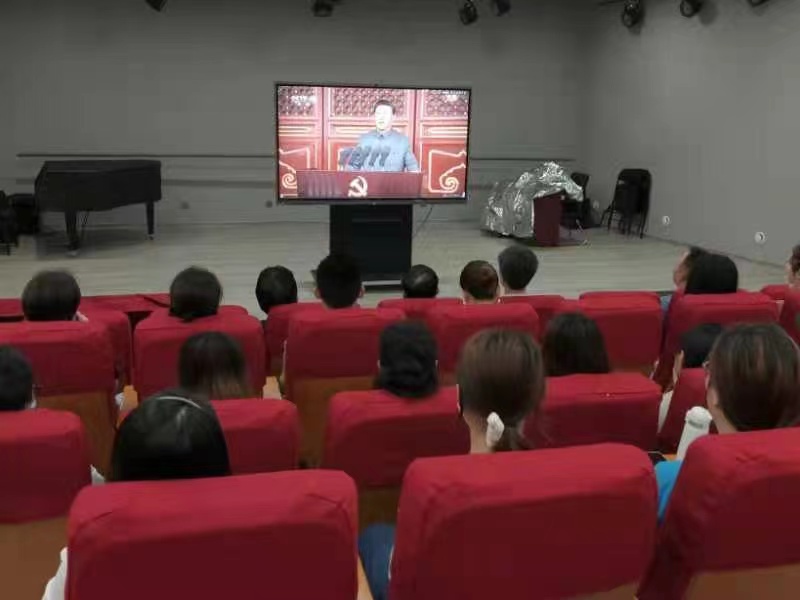 7月1日上午8时,庆祝中国共产党成立100周年大会在北京天安门广场隆重举行。中共中央总书记、国家主席、中央军委主席习近平出席并发表重要讲话。永利集团官网师生采用集中与分散收看相结合的方式收听收看了大会直播。在艺术楼八音讲堂,副院长陈新宇、任远,党委副书记郭振与师生党员一起集中收看直播。已离校的学生在家自觉观看、学习。