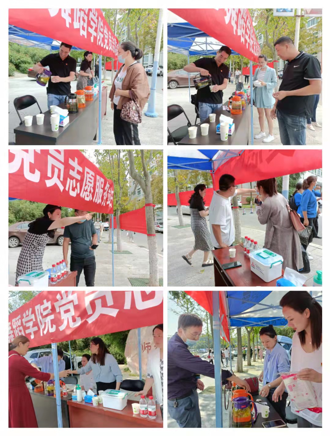 迎新服务站内饮用水、针线包、常用药品、口罩等物品整齐摆放,30余名师生党员统一佩戴党徽,为前来报到的新生与家长提供细致周到的服务。他们分工明确、密切配合,认真做好茶水提供、方向指引、行李搬送等工作。党员们声声贴心的问候,句句耐心的解答,使广大新生感受到了热情与温暖。